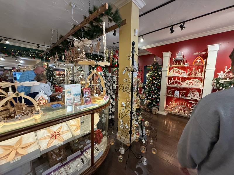 Walking into the store, you will find hand carved wood pieces, glass ornaments, Papier-mâché, tree toppers, hand made beer steins, Porcelain dolls and lots of Christmas smoker wooden dolls. The Christmas Haus is open year-round, everyday from around 10 a.m. to 5 p.m.